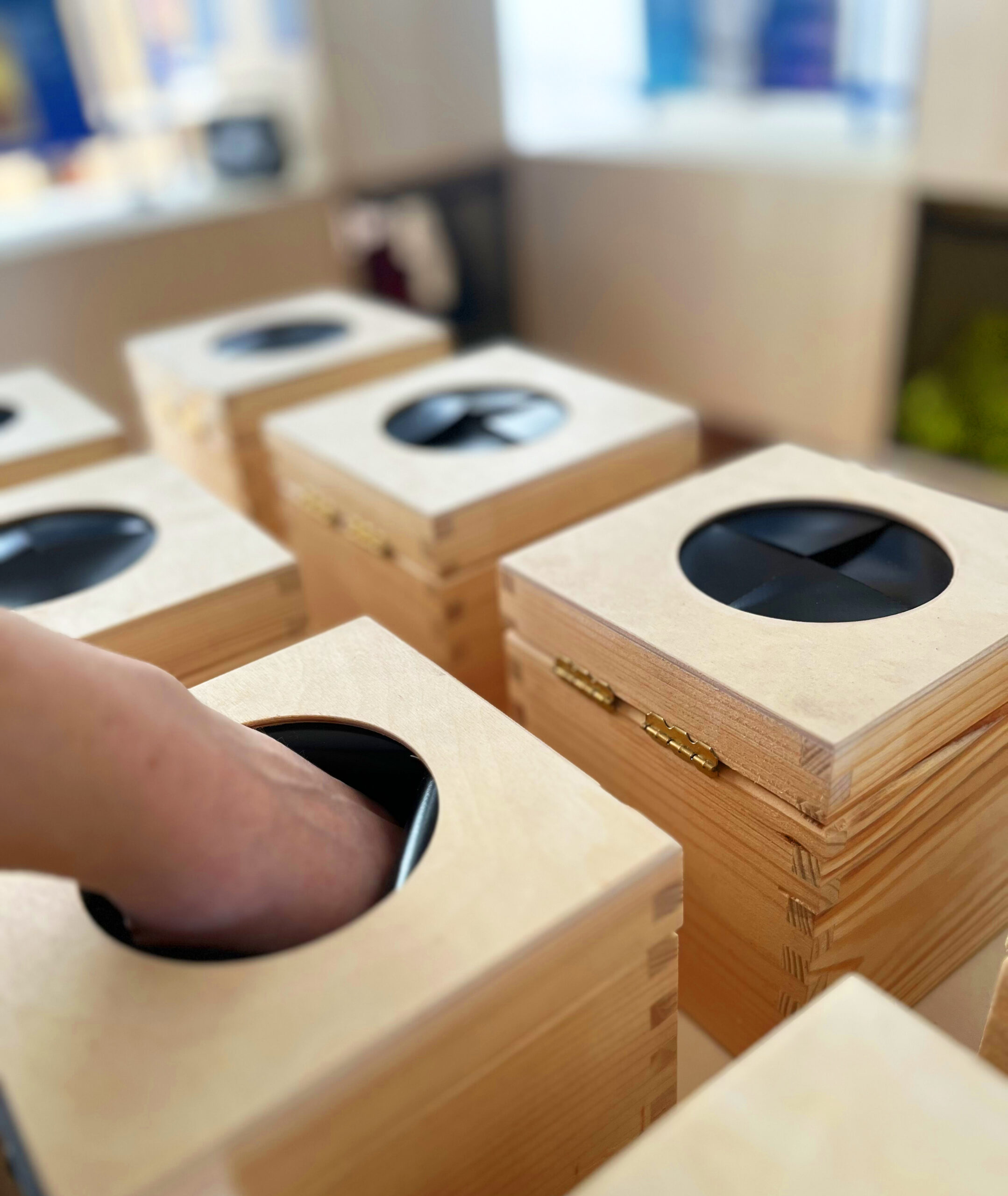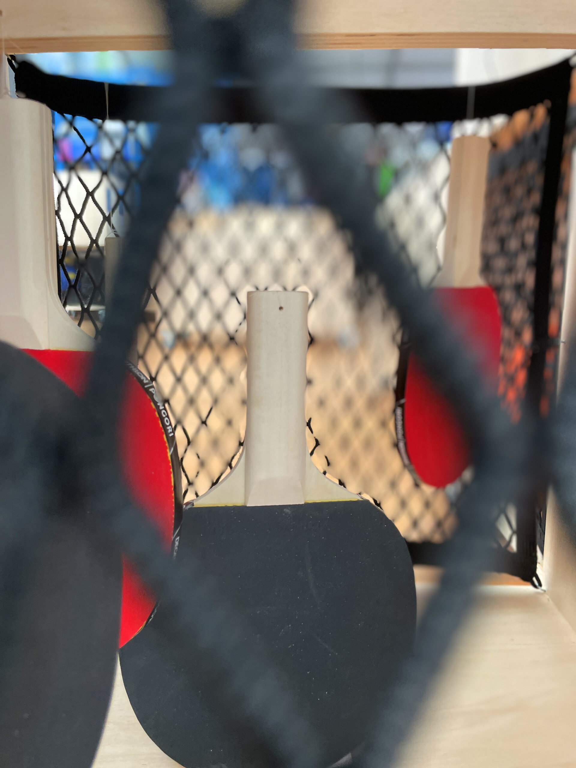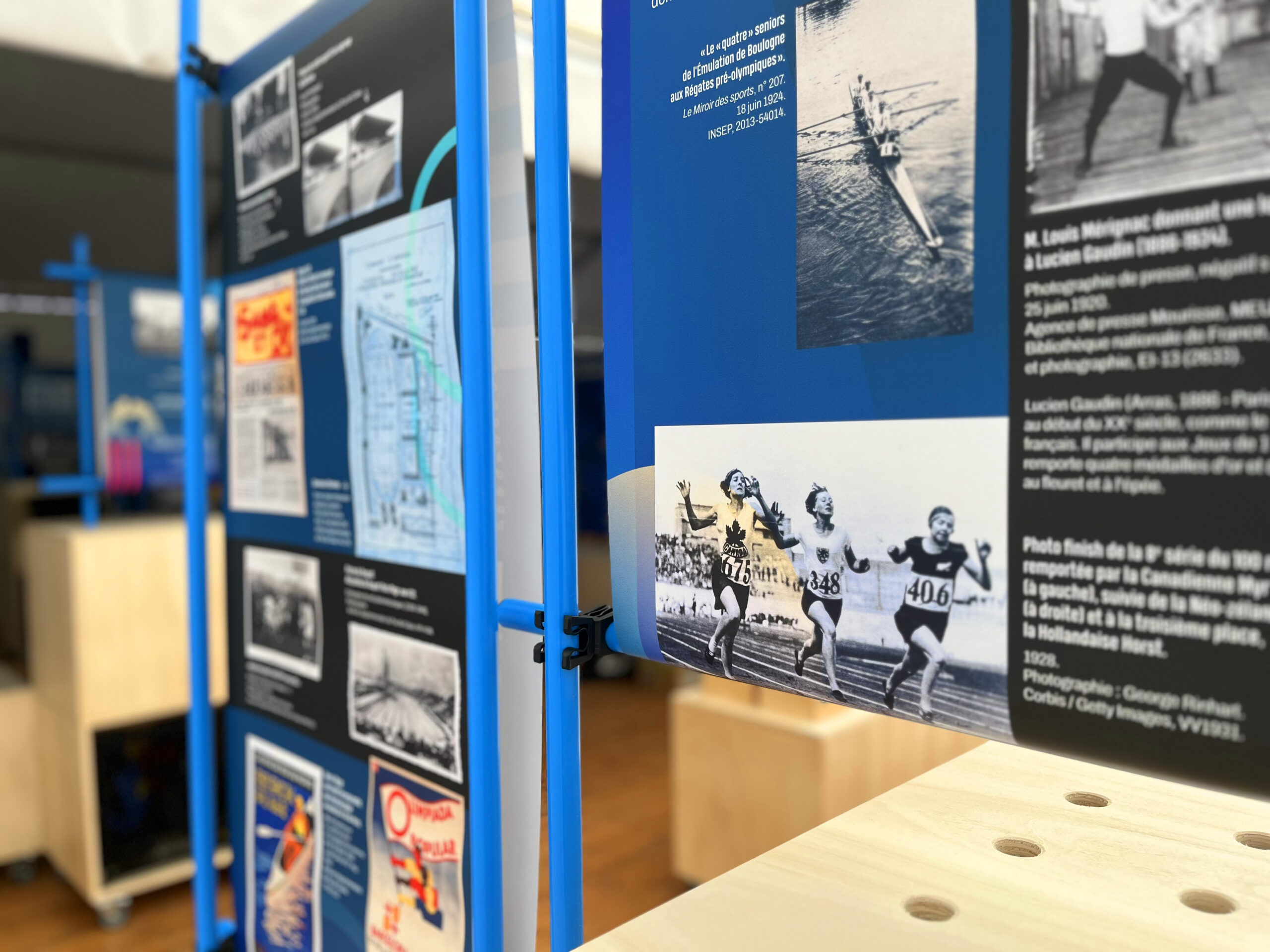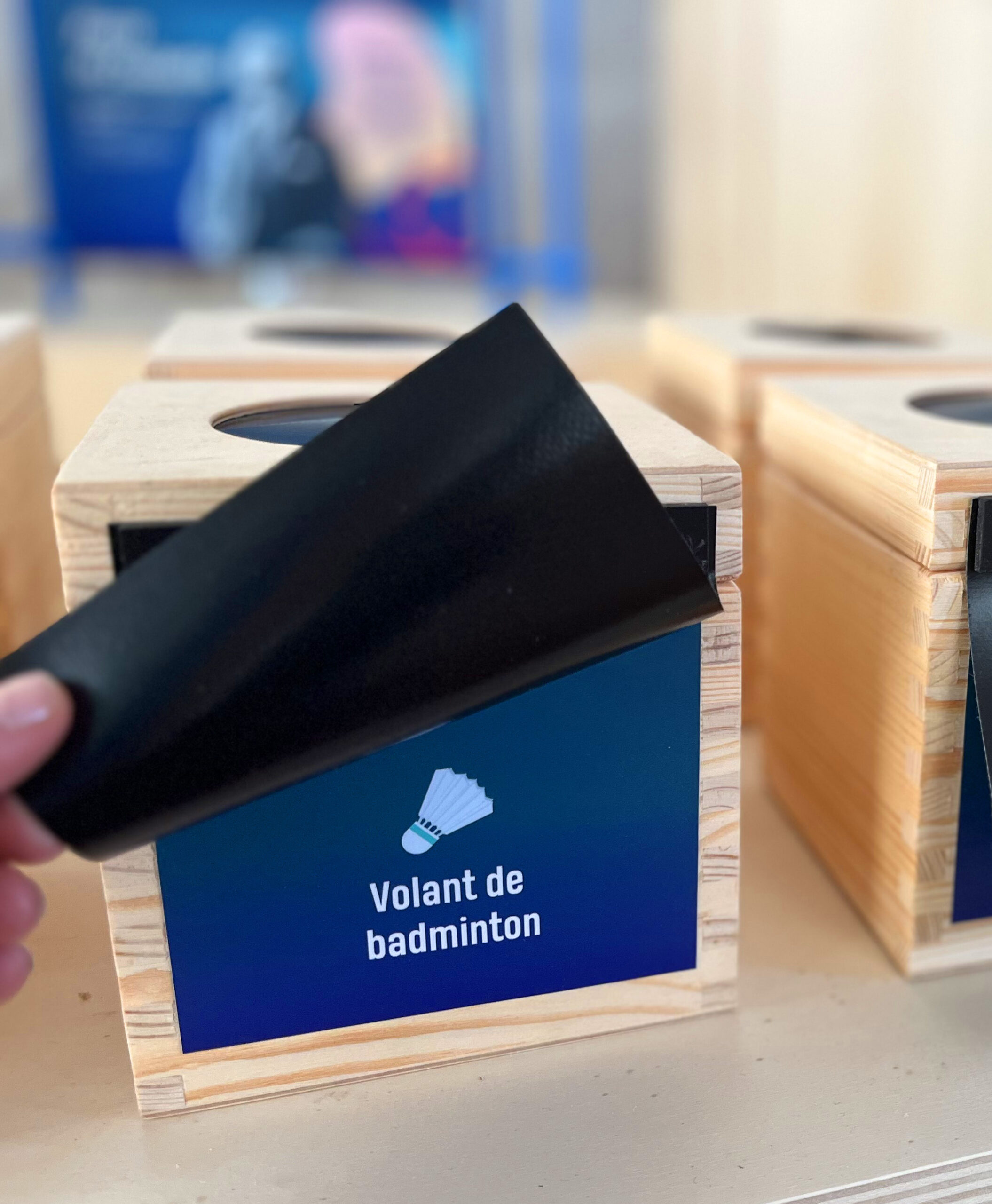 Pensée pour être itinérante, l’exposition a été conçue pour être légère, maniable et facile à installer. La scénographie réutilise du matériel sportif — filets, jalons, ballons — associé à des modules en bois simples à monter et démonter, dans une démarche résolument éco-conçue.